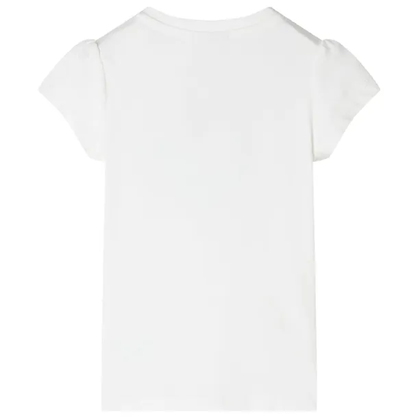 Ta dziecięca koszulka ma krótkie rękawy, okrągły dekolt i prosty krój. T-shirt w kolorze ecru ozdobiono uroczym sercem z cekinów. Wykonano go w 95% z bawełny i w 5% z elastanu, dzięki czemu jest miękki i przyjemny w dotyku.