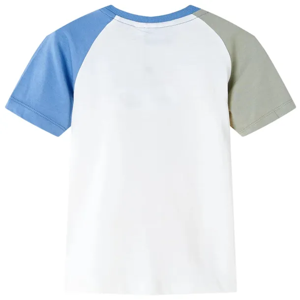Ta dziecięca koszulka ma krótkie rękawy, okrągły dekolt i prosty krój. Ozdobiono ją obszytą dookoła naszywką z dinozaurem na lewej piersi. Dziecięcą koszulkę z krótkimi rękawami wykonano w 100% z bawełny, dzięki czemu jest miękka i przyjemna w dotyku.