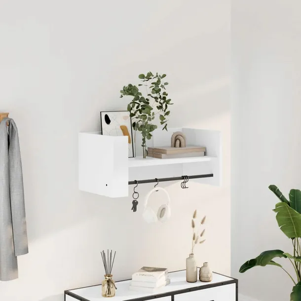- Dużo miejsca do przechowywania: półka ścienna oferuje poręczną przestrzeń do przechowywania różnych rzeczy codziennego użytku w sposób uporządkowany i w zasięgu ręki. Dodatkowo półka jest wyposażona w drążek na wieszaki, dzięki czemu można na niej powiesić klucze, torby, czapki i tak dalej.