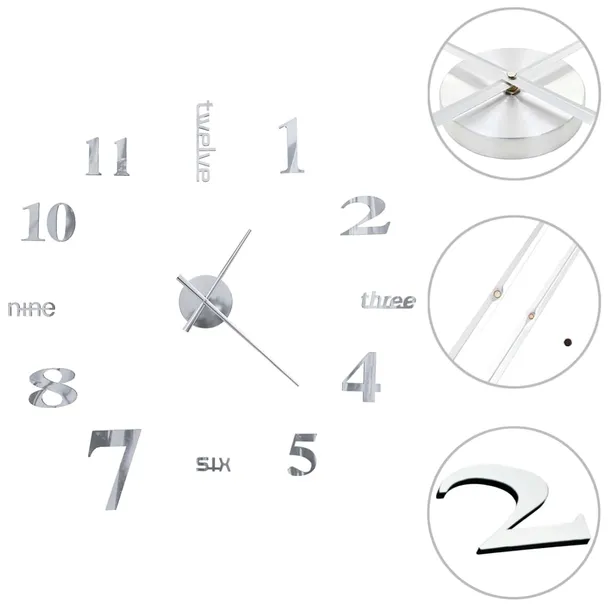 Zegar ścienny 3D DIY - śr. 100cm, srebrny, EVA