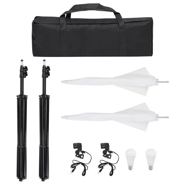 - Znakomite oświetlenie: poprzez zastosowanie lamp świecących światłem dziennym o temperaturze barwowej 5500 Kelwinów można uchwycić obiekt w naturalny sposób. Dwie białe parasolki zapewniają miękkie światło, co pozwala zniwelować ostre cienie.